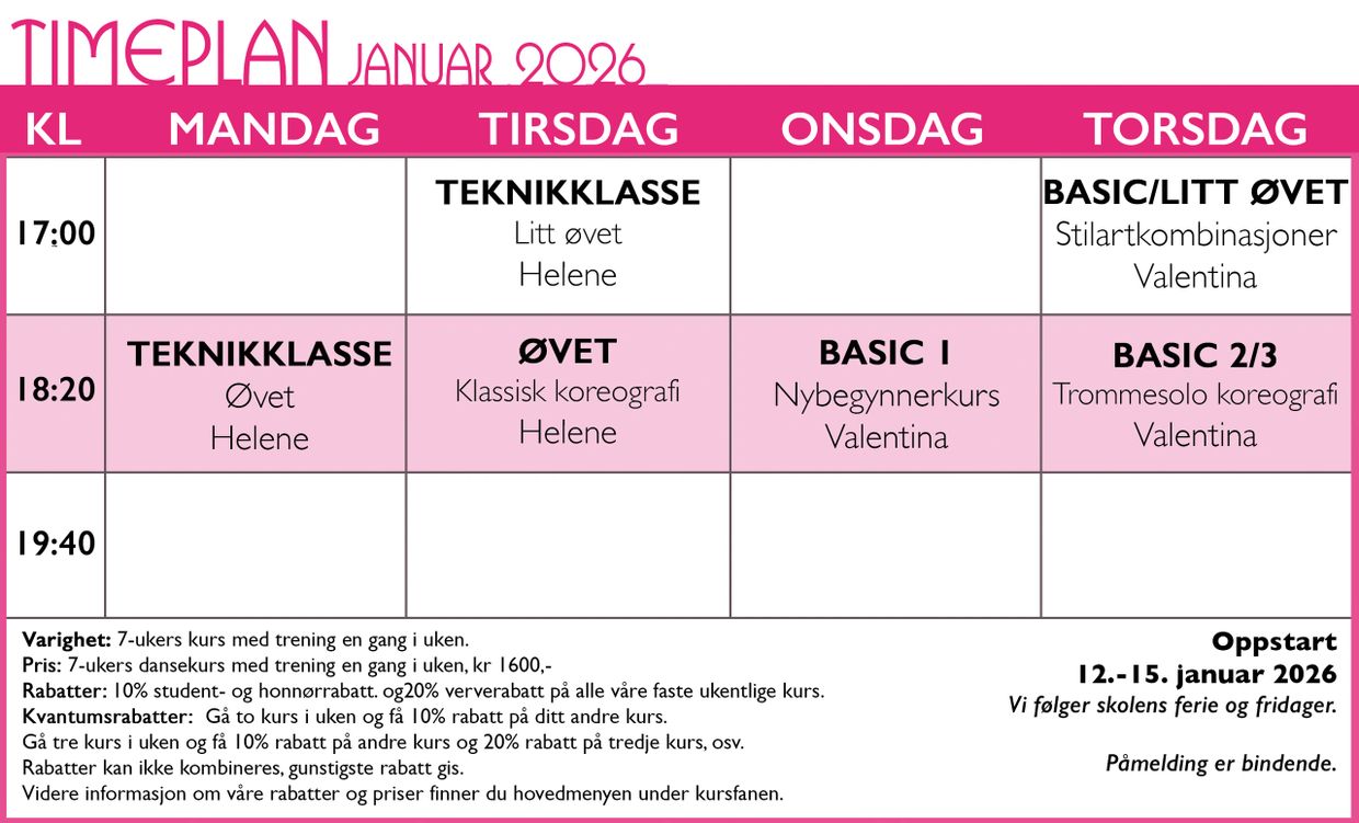 Januar: 12.-15. januar (siste kursuke 2.-5. mars)
